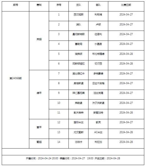 第24068期传足胜负游戏包括英超、德甲、意甲和葡超四个联赛。英超联赛周中遭遇失利的利物浦和切尔西各自前往客场作战,两队都急需重整旗鼓,稳定军心。而德甲联赛中莱比锡与多特的欧冠资格六分战无疑最受关注。此外,期待创造不败神话的勒沃库森与力争16年后重返欧冠的斯图加同样将上演激烈对决。